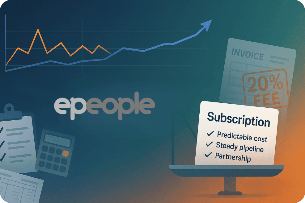 Note: ePeople offers both fixed fee and subscription options with a focus on simple and transparent pricing, paying for outcomes rather than inflated percentages, and aligning subscription plans to the way your firm hires across the year. These statements reflect the public positioning on our website at the time of writing.